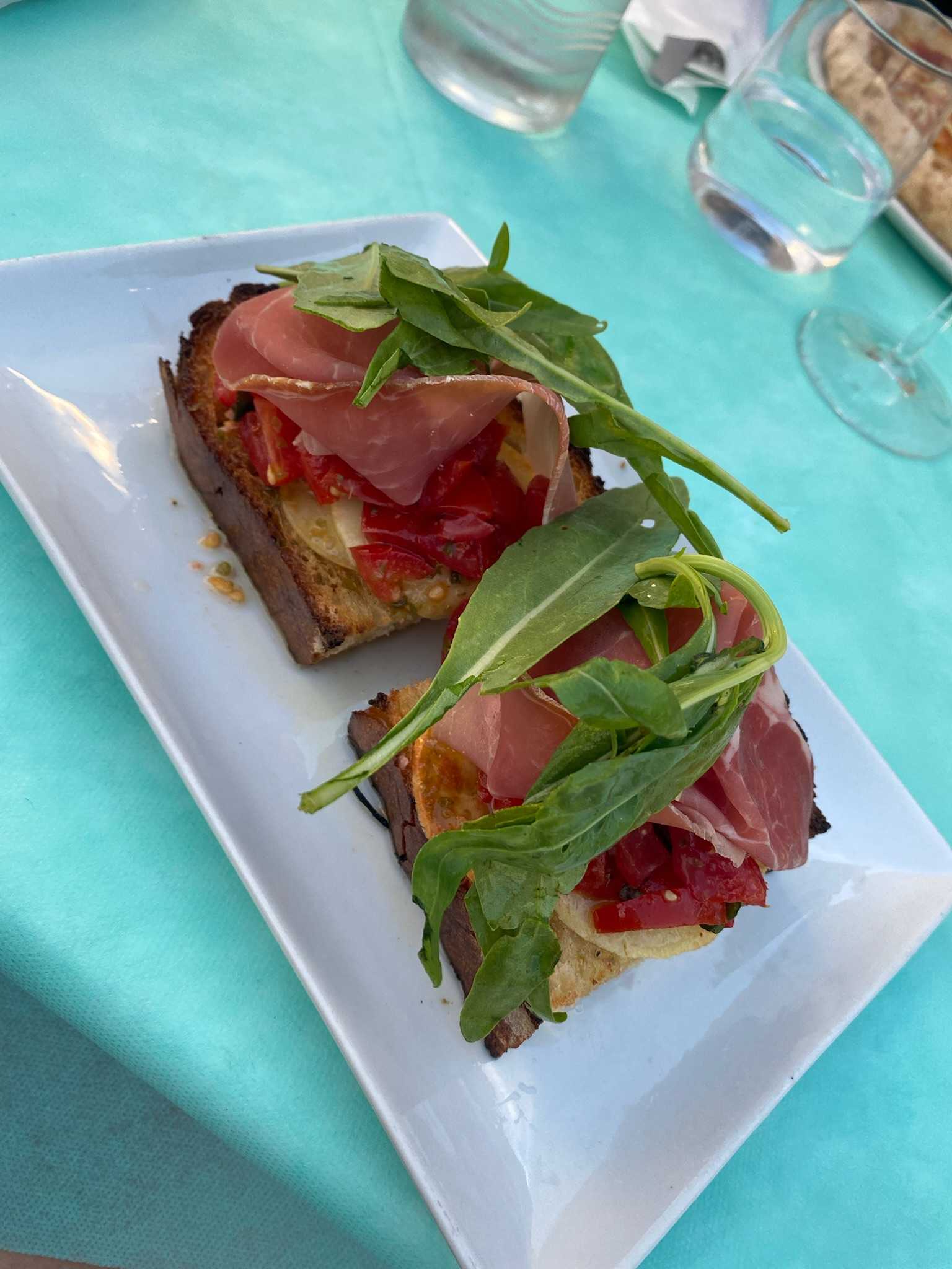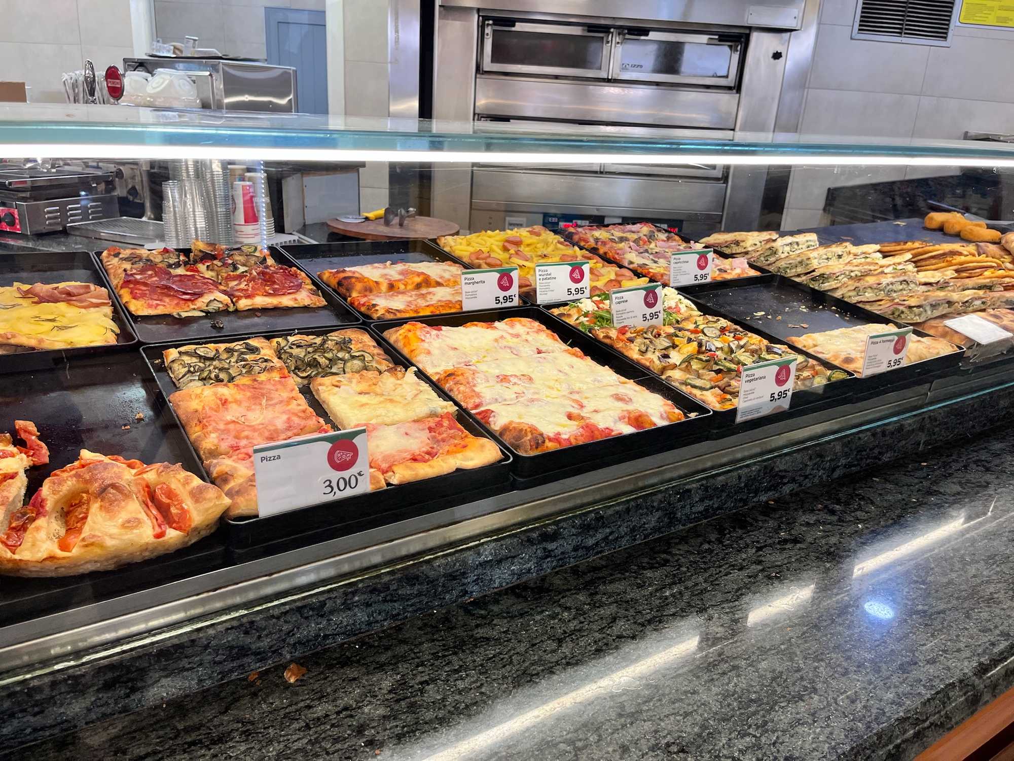 Pizzu jsme tedy nakonec neměli – ani večer, ani druhý den k obědu. Zato nám v malém obchodě s barem připravili čerstvou svačinu – pečivo s prosciuttem cotto, k tomu jsme si dali espresso a nakoupili pár základních věcí.