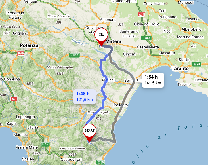 • 2× stellplatz (Vieste + Maratea): celkem 120 €