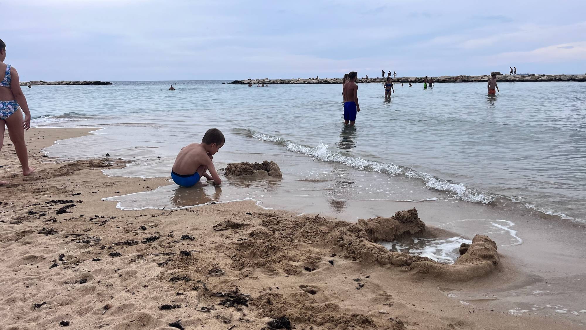 Tentokrát to zkoušíme s Bari. Dětem jsme slíbili opravdovou písečnou pláž – žádné kamínky, kde se hrady dělají těžko – a tak parkujeme na velkém Park and Ride Bread and Tomato. Stojí jen 1 € na celý den, což je skvělé. K městské pláži Pane e Pomodoro je to jen pár minut pěšky. Nadšení ale rychle opadá…