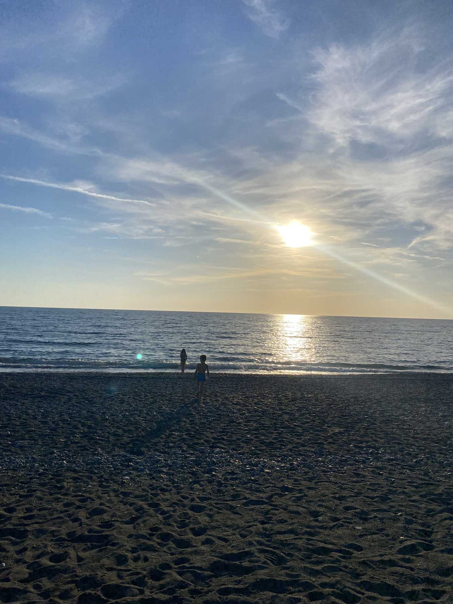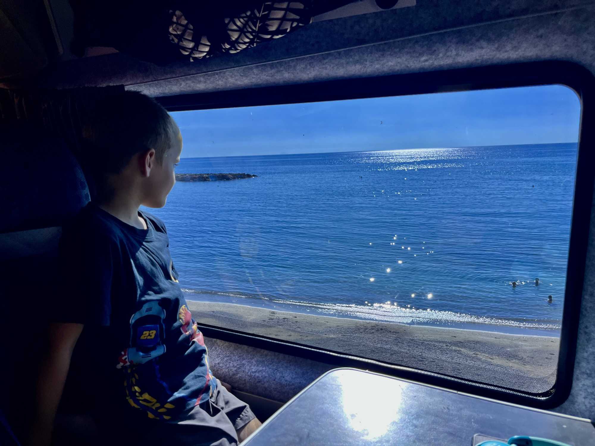 Konečně moře! Přesně na tohle se děti těšily od začátku cesty. Všechny ty památky, hory a serpentinové silnice trpělivě snášely hlavně díky příslibu koupání. Teď je to tady – první kontakt s mořem.