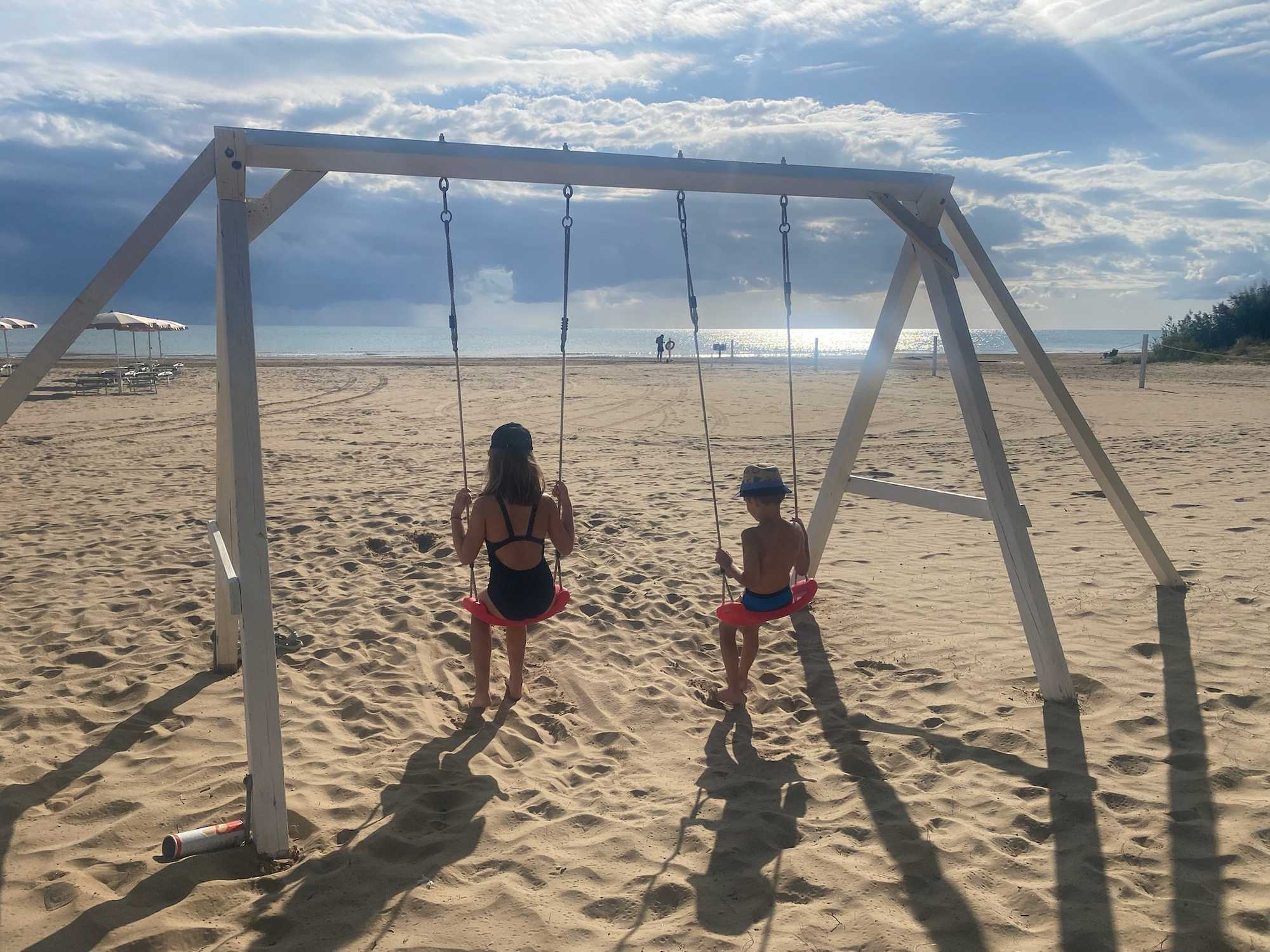 A hlavně – děti jsou šťastné jako nikdy. Jemný písek, mělké moře, vlny, houpačka… prostě ráj. Tohle je přesně ten důvod, proč je cestování autem tak skvělé – flexibilita. Rychle přehodnocujeme plán a místo odjezdu zůstáváme ještě jednu noc.