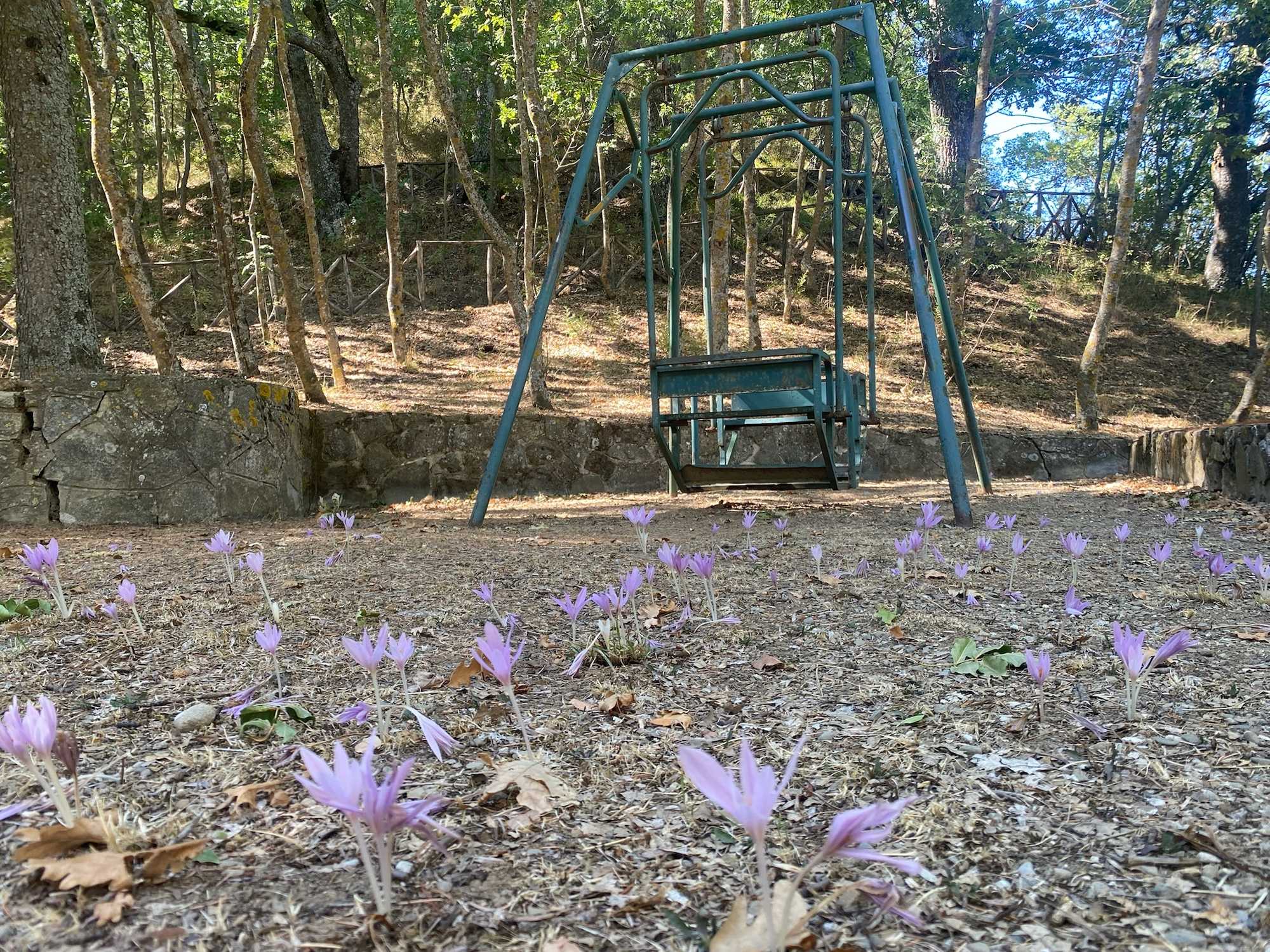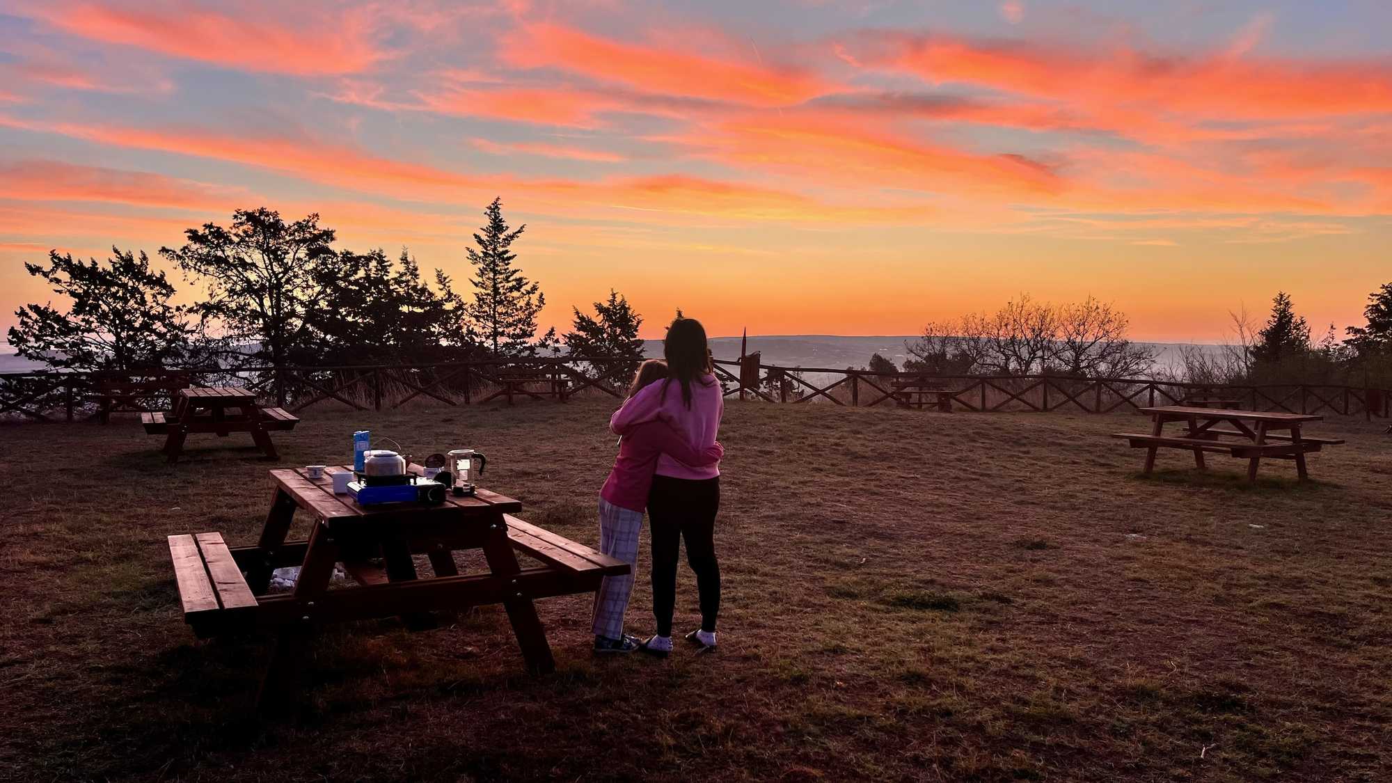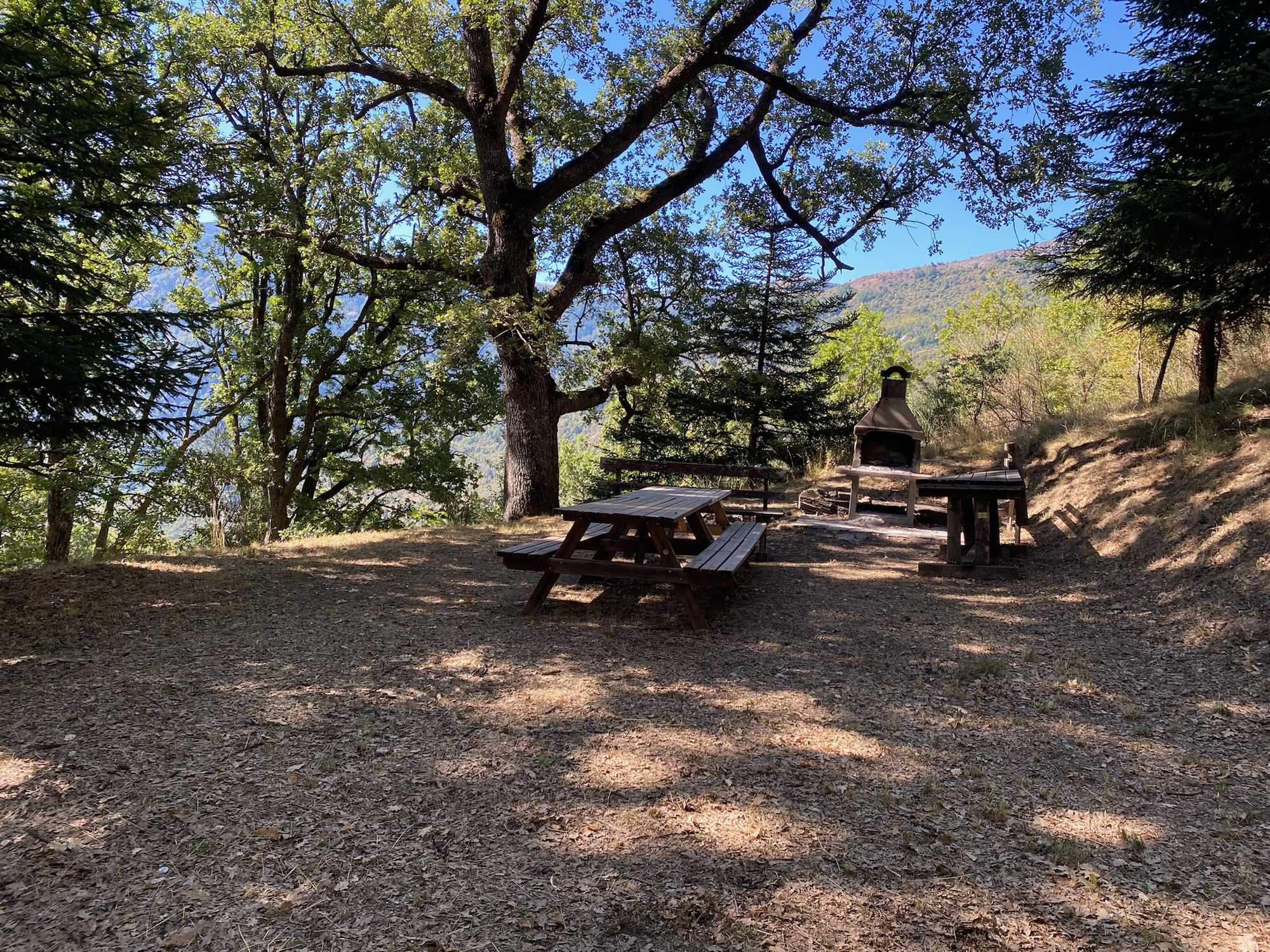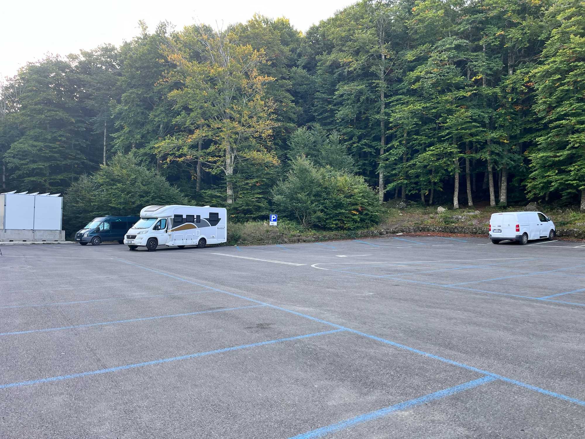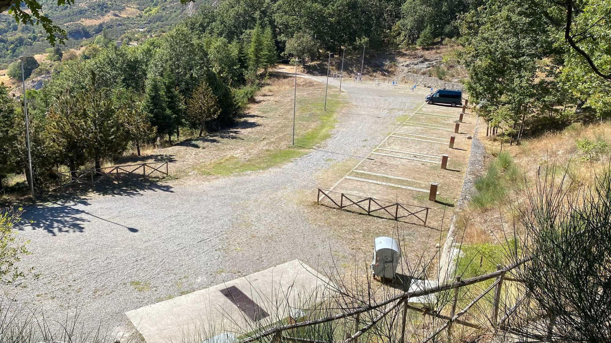 Na okraji vesnice najdete překvapivě hezké stání pro obytná auta – s výhledem do údolí, pitnou vodou, možností připojení na elektřinu, a navíc piknikovou zónu se stolky, lavičkami a kamenným grilem. Za parkovištěm nás potěšilo i malé arboretum s popisky rostlin – a když se vydáte pěšky vzhůru po jedné z cestiček, dojdete ke starému přístřešku. Už je sice polorozpadlý, ale pro krátkou procházku je to ideální.