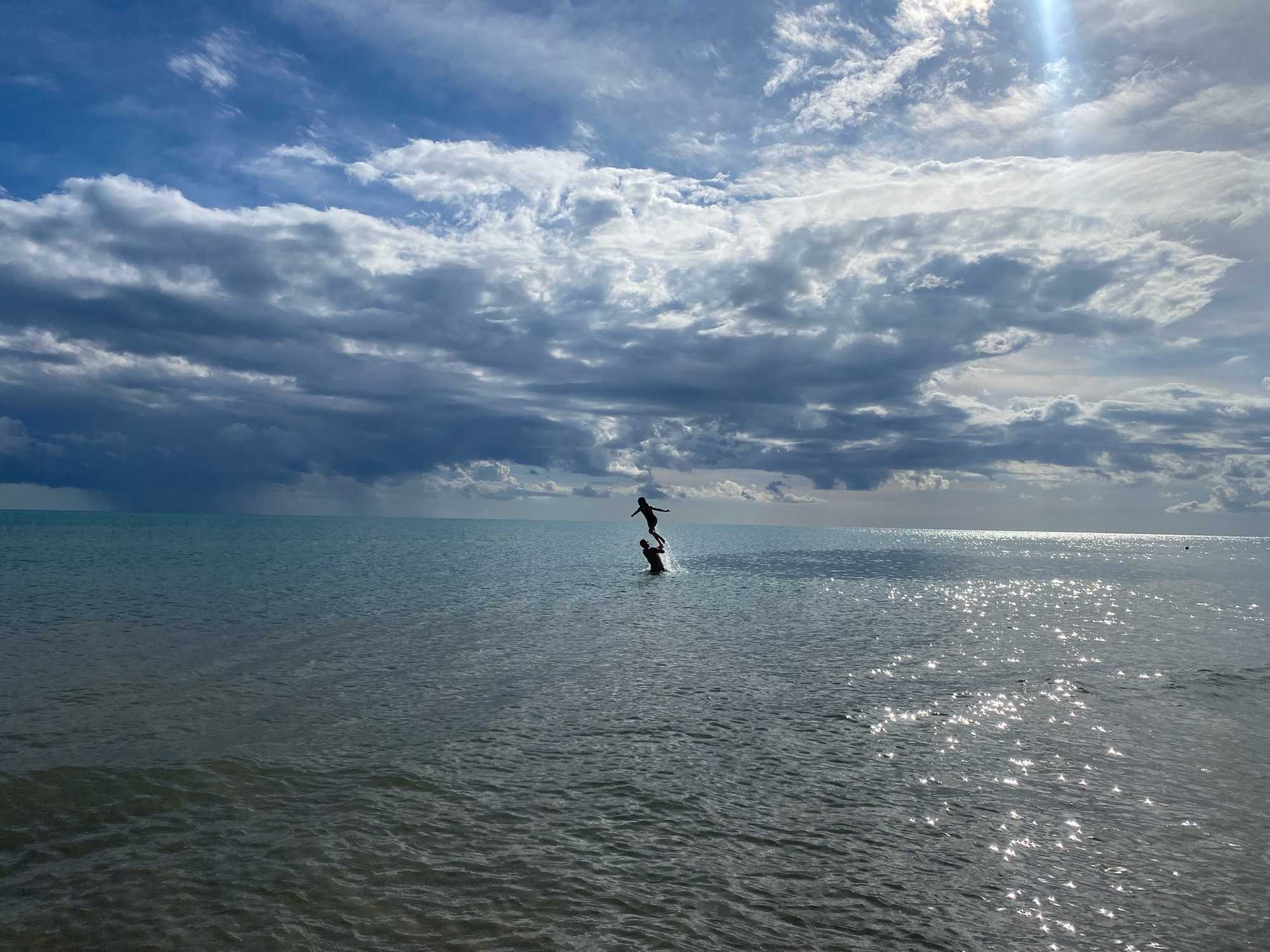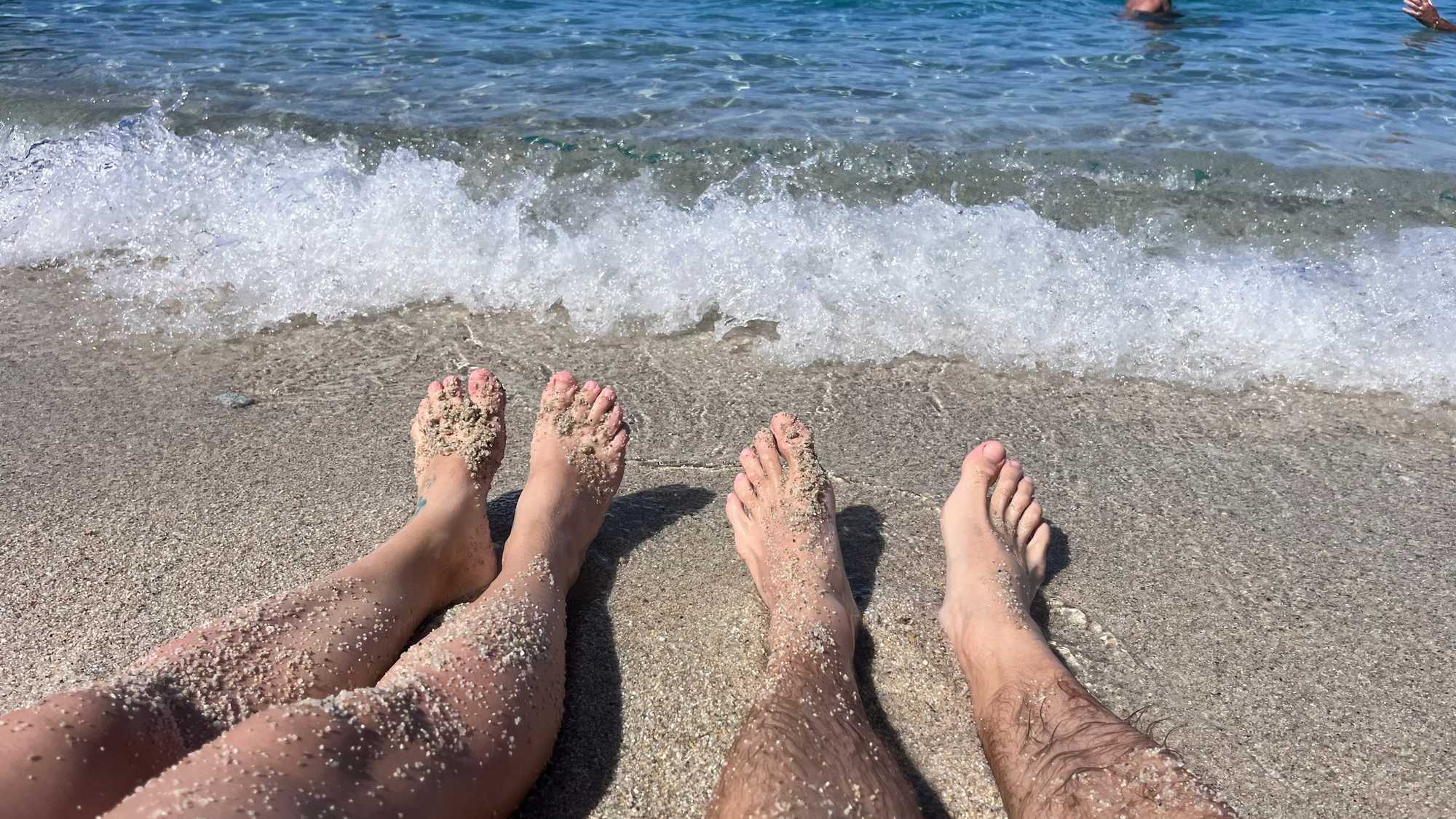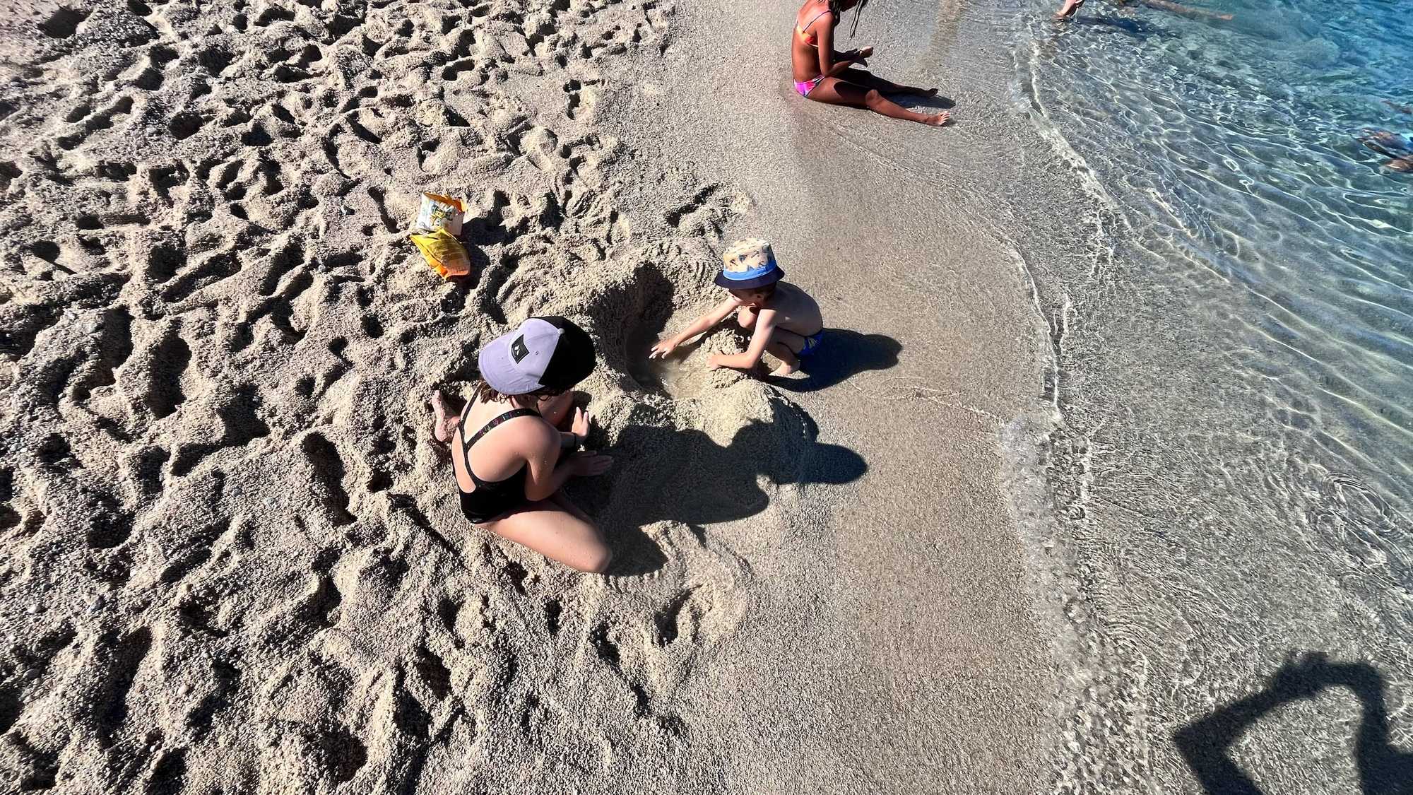 Dopoledne si ještě naposledy užíváme sluníčko a moře – předpověď totiž hlásí, že odpoledne dorazí déšť. A tak si tenhle poslední plážový čas opravdu vychutnáváme: koupání, odpočinek, chvilka v písku… dokonalá tečka za naší dovolenou.
