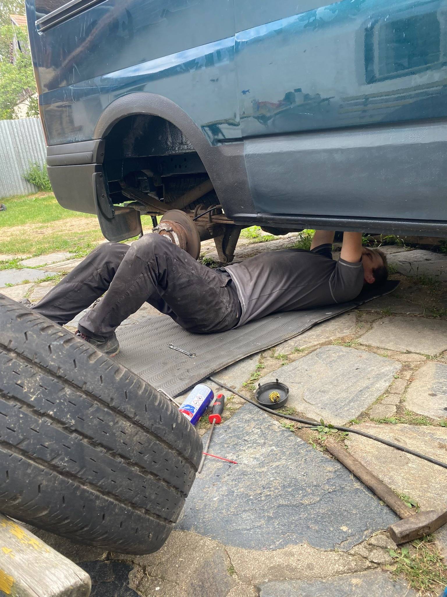 V pondělí jedu kolem našeho Transita do práce a vidím, že je pod autem kaluž!
