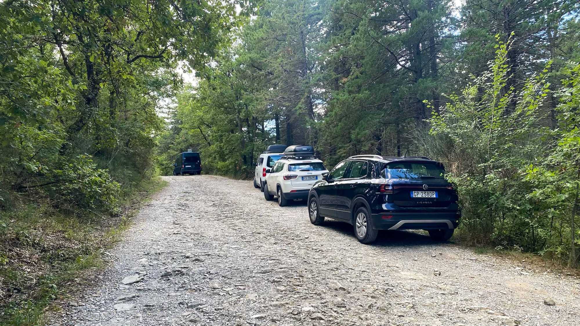 Na spaní jsme se přesunuli do Rifugio Cantore (1700 m n. m.), kde je parkování zdarma. Bylo tam svěže, ale krásně – lesy plné houbařů, horské chaty a čistý vzduch. Super místo na přespání, a kdybychom měli víc času, určitě by stála za to i nějaká túra po okolí.