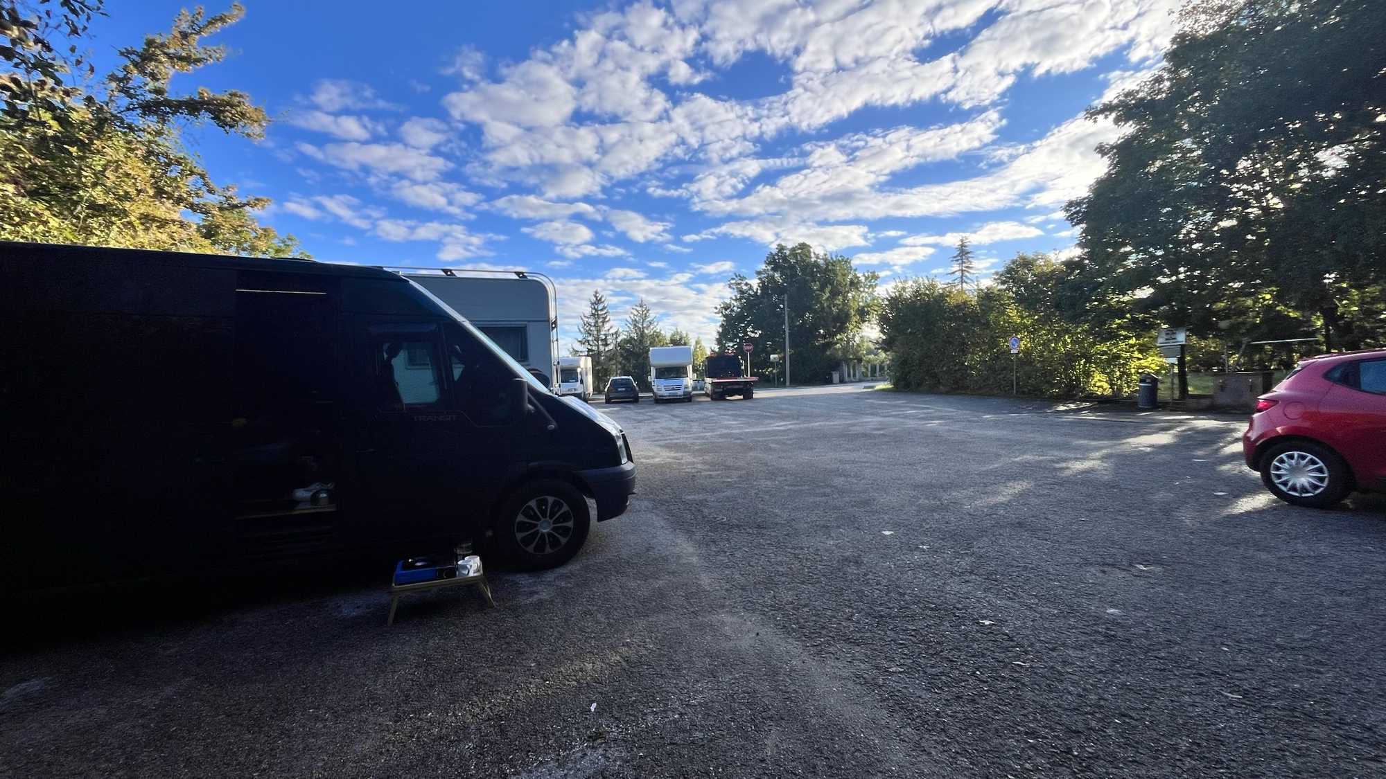 Parkujeme na záchytném parkovišti  „Park 5“ (1,5 € za hodinu). Zpětně vidíme, že hned za ním je ještě jedno, které vypadá zdarma – ale raději si zaplatíme pár eur, než riskovat, že nás někdo vykrade.