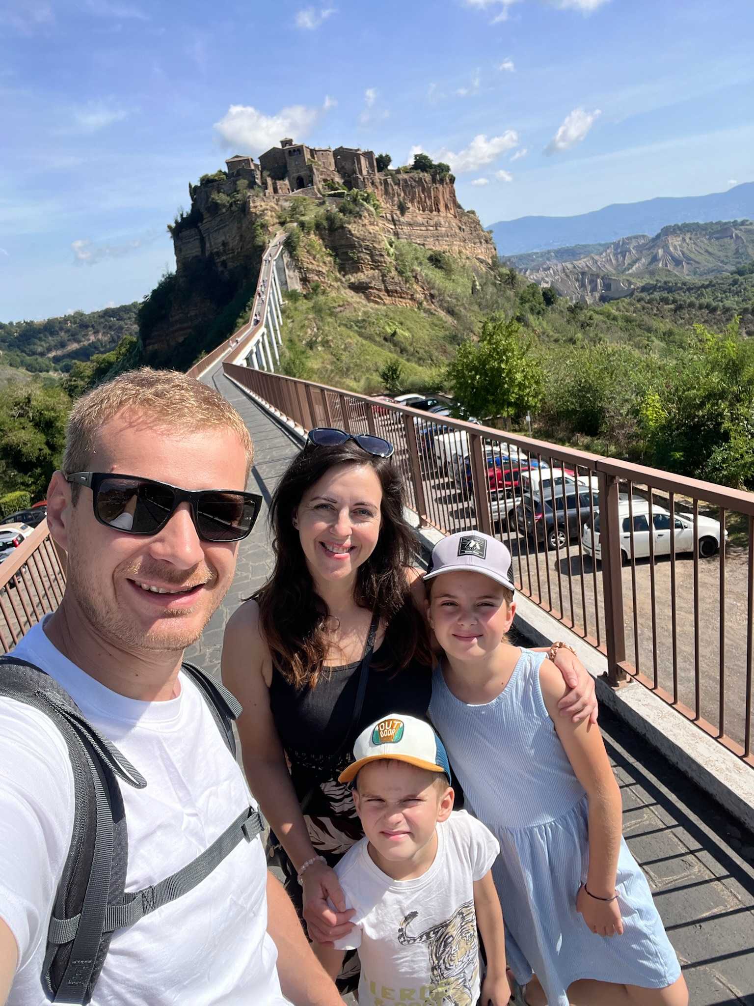 Ráno neztrácíme čas a vyrážíme směr Civita di Bagnoregio – malebné městečko na skále, známé jako „umírající město“. Po zhruba 2,5 hodinách jízdy dorážíme na parkoviště Piazza Alberto Ricci, které je hned vedle známé vyhlídky. Ještě se ani pořádně nerozkoukáme a už za námi přichází policisté.