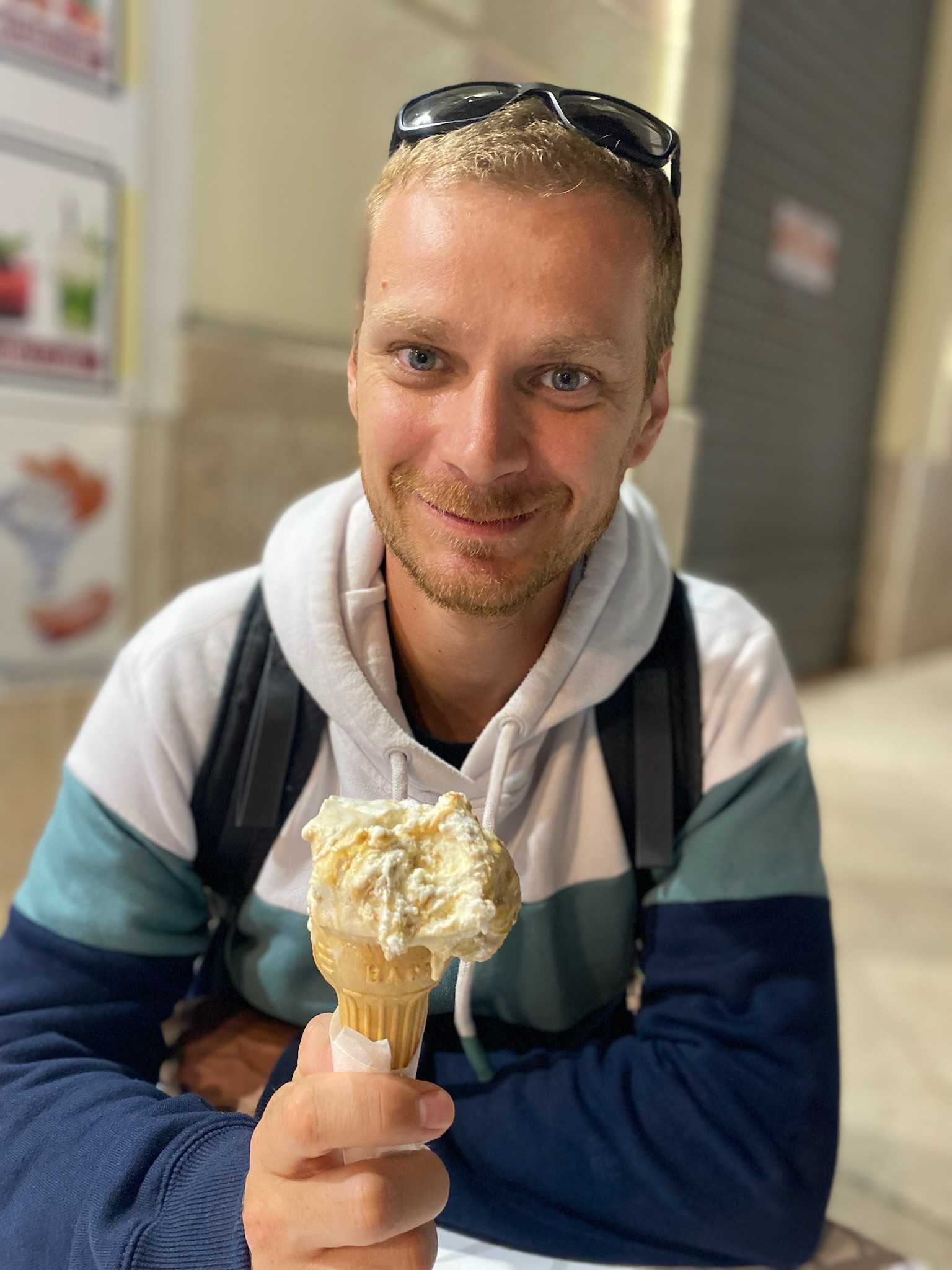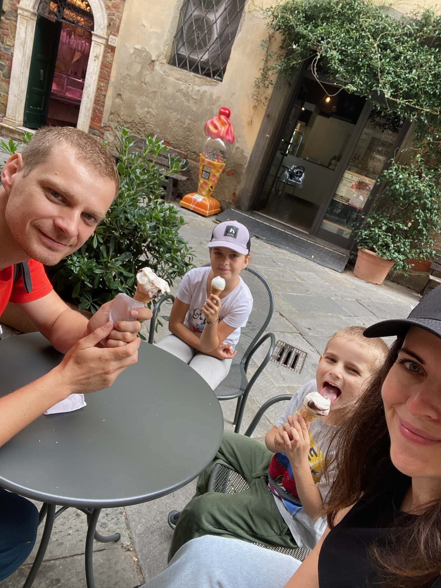 Po snídani vyrážíme na krátkou procházku po Lucignanu. Máme jasný plán – ulovit pár dobrot a hlavně ochutnat první letošní italské gelato! A rovnou topovka – výborná zmrzka, přesně ta, na kterou jsme se celou dobu těšili. Italské gelato je zkrátka úplně jiný level.