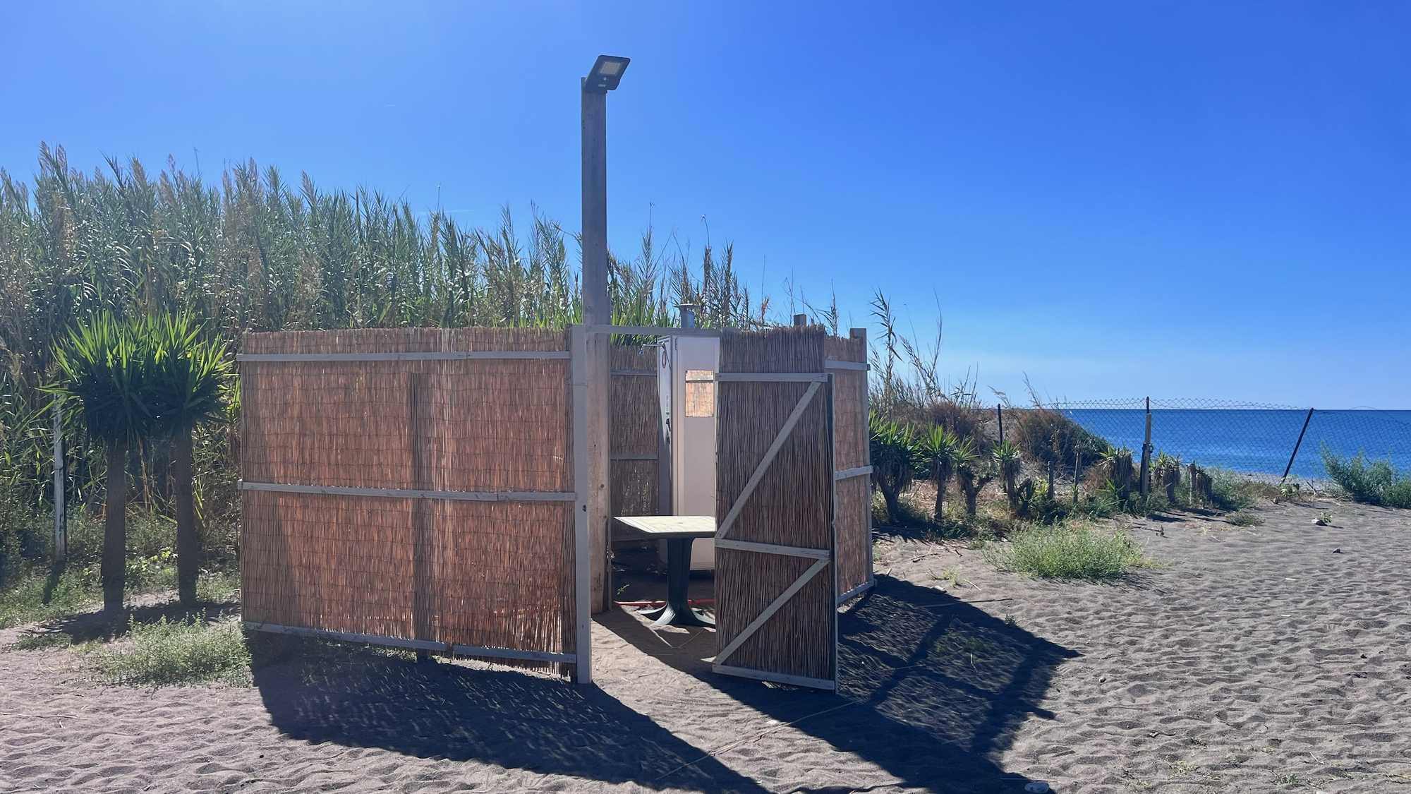 Hledali jsme místo, kde budeme co nejblíž pláže, ale zároveň budeme mít aspoň základní zázemí – voda, sprcha, trochu stínu. Nakonec volba padla na Area Camper Balai Beach Club (P4N no. 206652). Jen pár aut, krásně klidné místo… jenže – sezóna právě skončila. Lehátka šla do skladu, bufet zavřený a teplá voda vydržela jen první večer.