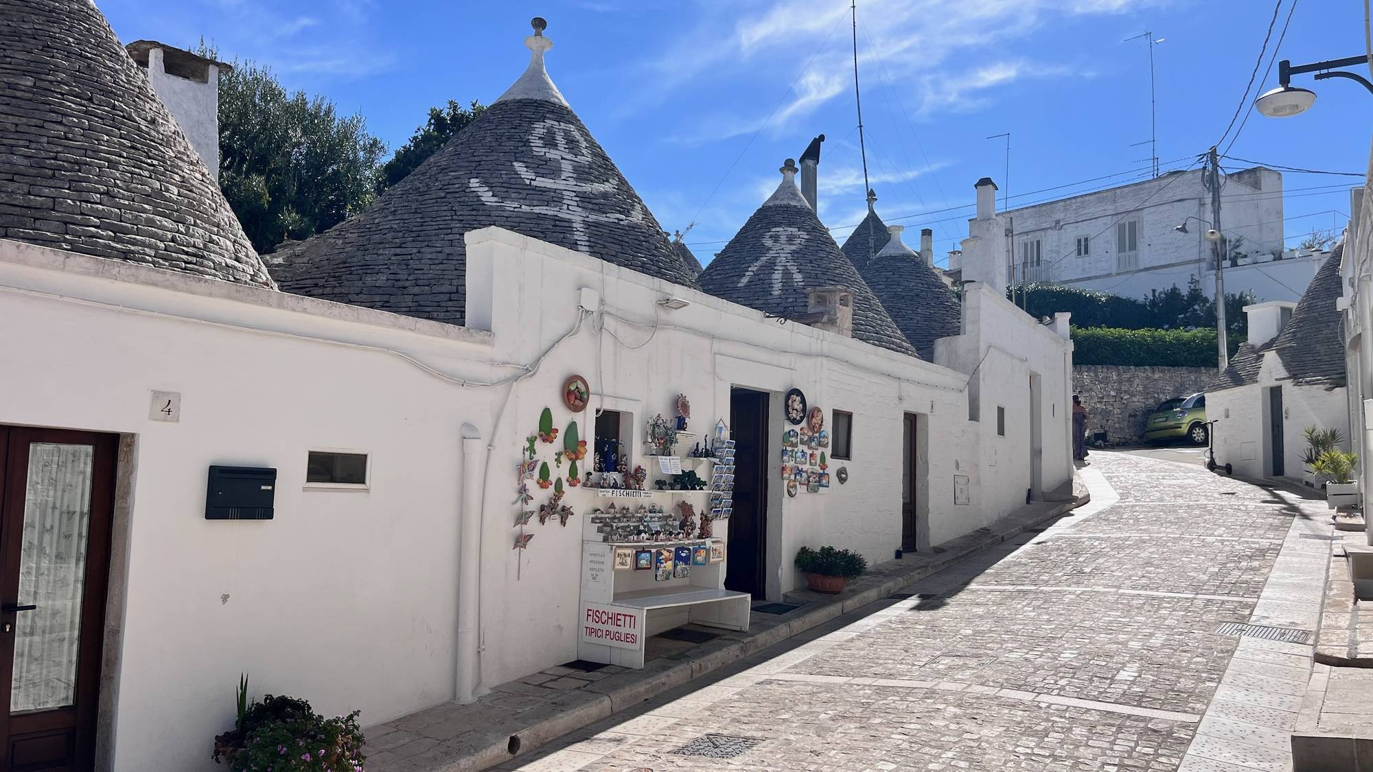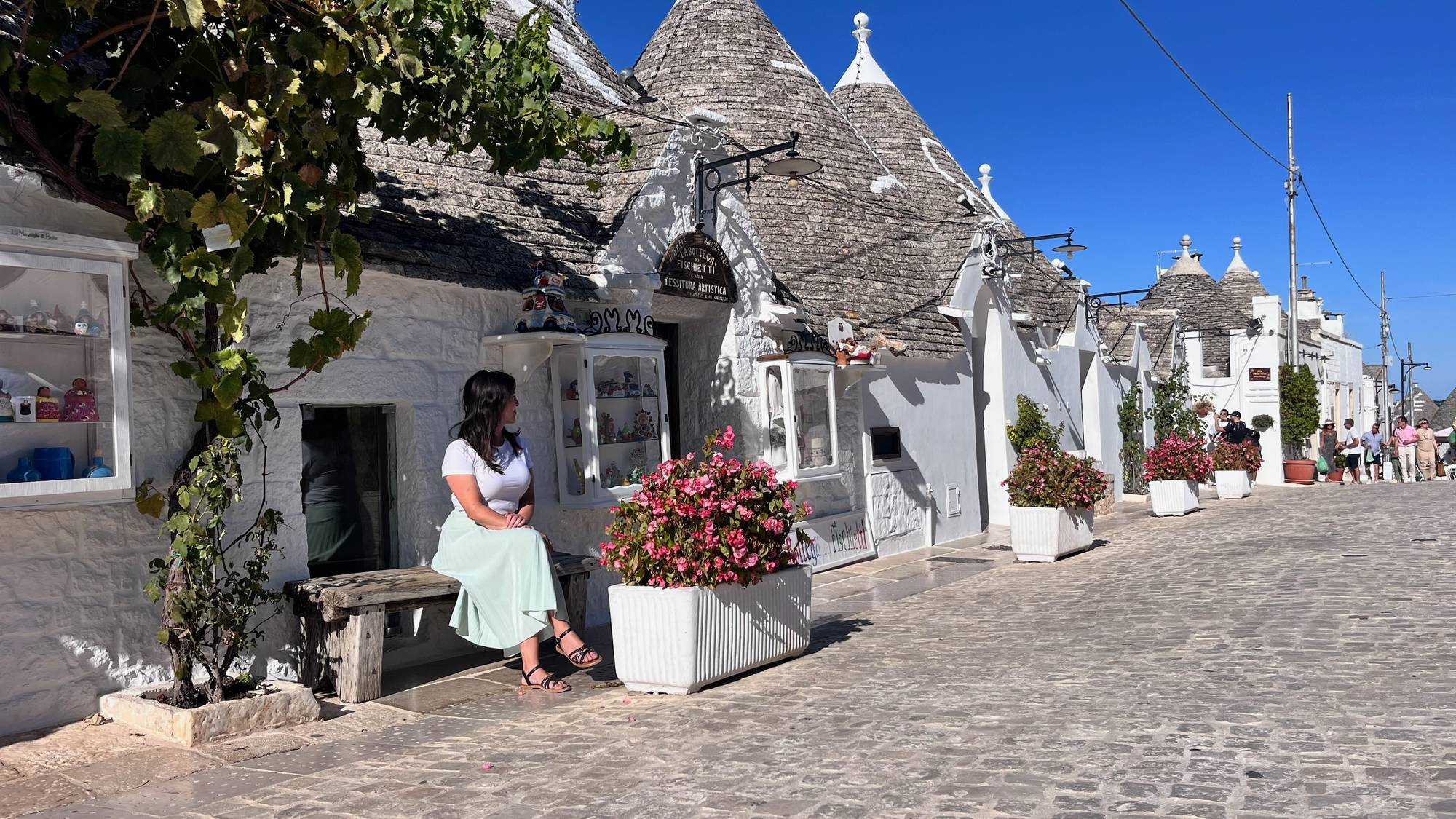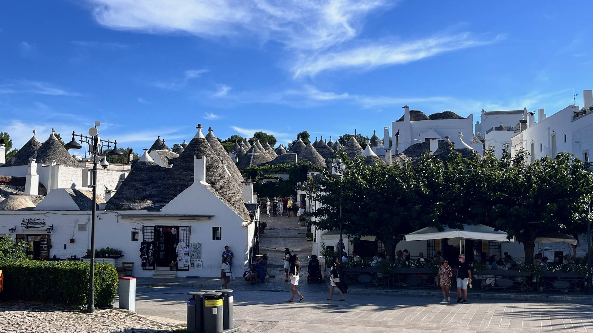 A pak už jen bílá pohádka. Alberobello je prostě kouzelné. Úzké uličky, zářivě bílé domky, slunce odrážející se od kamenů – člověk má chuť jen chodit a vnímat ten klid. Monči sen se tu plní. Už dlouho si přála se sem podívat – a bylo to přesně takové, jak si vysnila. Možná ještě hezčí.